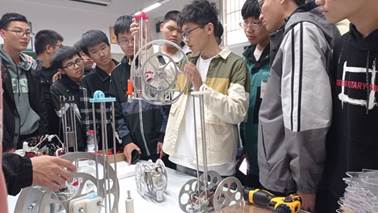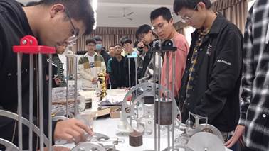 304am永利集团机电工程及老员工创新训练中心指导老师李锶为新生讲授学科竞赛相关知识,他强调了掌握这些先进技术对一个人未来发展的作用。基地负责同学从传统表面工程技术及产品构成、激光加工技术在机械制造领域的应用两个方面介绍机械制造领域先进技术与装备,希望大家做到精神饱满、知行合一,由被动学习变为主动学习,努力提升自身的专业素质和科研创新能力。基地现场疑问与解答、赞扬与感叹声此起彼伏,21级新生对实训基地表现出浓厚的兴趣,争先恐后地想要试验每一台仪器。本次“走进实训中心”主题教育,进一步激发了新生的创新思维和专业兴趣,促进新生更多、更主动地参与到科研竞赛项目中来。